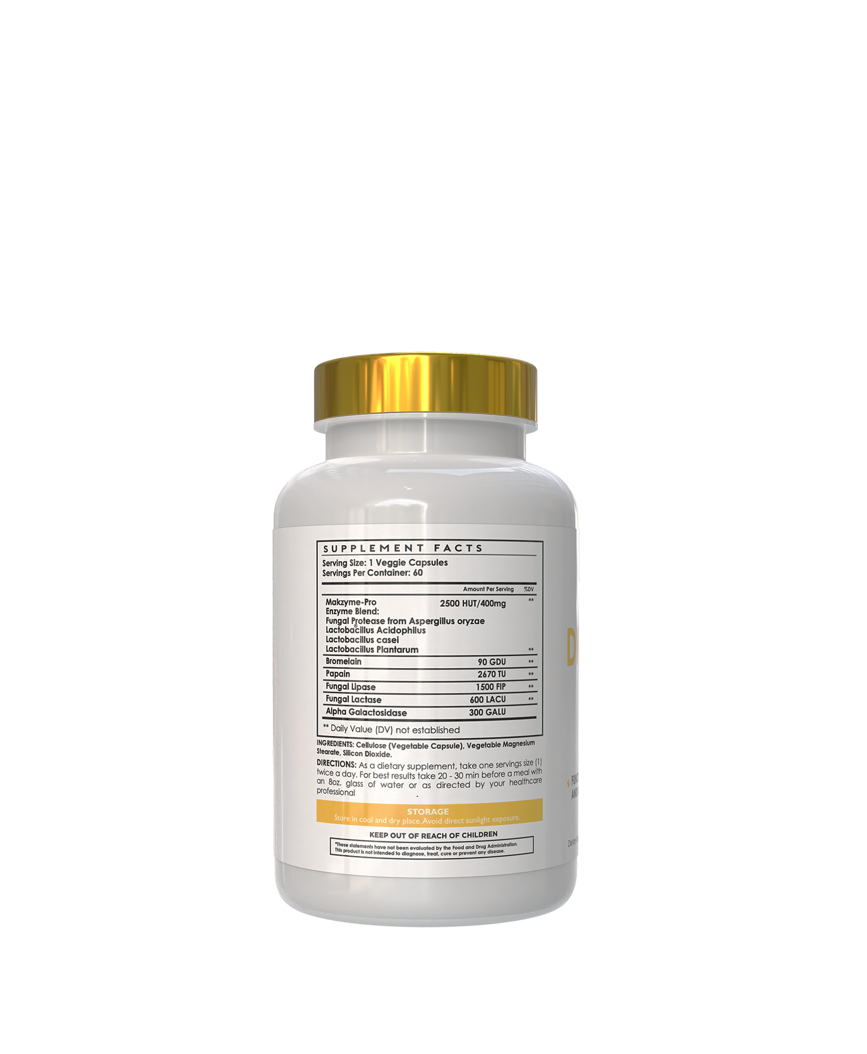 Fungal Lactase (400 LACU) – Breaks down lactose (milk sugar), helping those with lactose sensitivity.